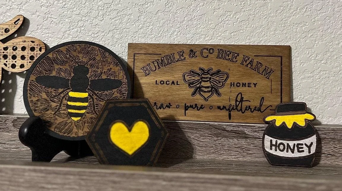 Add a sweet touch of farmhouse charm to your home with this handcrafted Bee Tier Tray Decor Set from Wildwood + Grace Handcrafted Designs 🐝