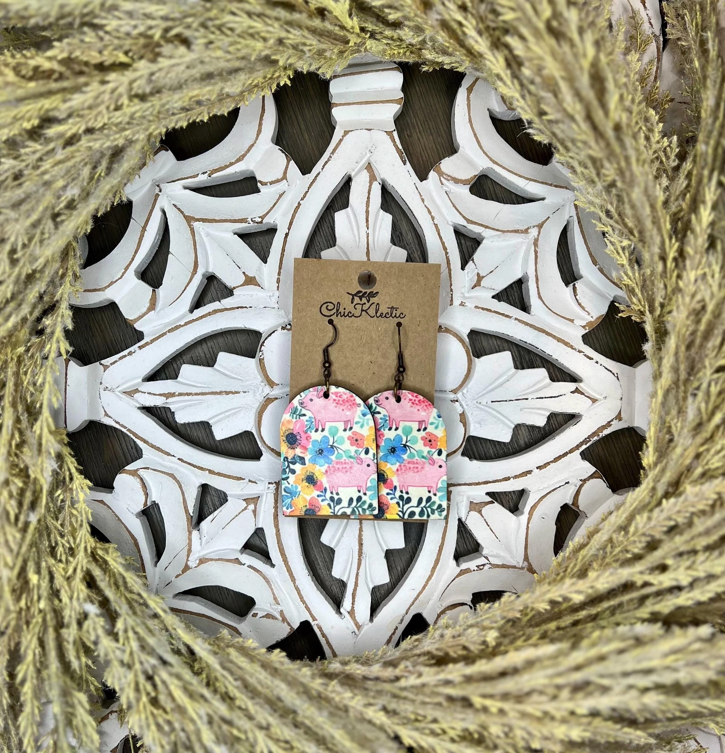 Spring Piggy Sublimated Wooden Earrings - casual, bridesmaids, rustic
